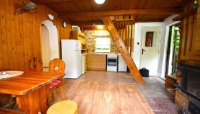 Chalupa má dva komíny, dve pivnice, úložné priestory pod terasou a vonkajšiu dreváreň.