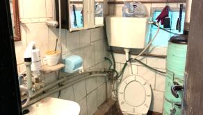 Podlahy sú drevené a dlažba.