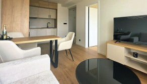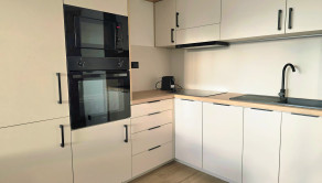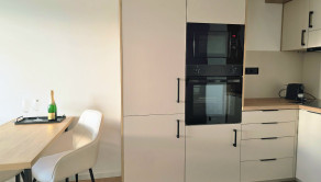 SPÁLŇA: posteľ s roštami a matracmi, skriňa. OBÝVAČKA: kuchynský kút so vstavnými spotrebičmi, pohovka, televízny stolík s TV, jedálenský stôl so stoličkami a robotický vysávač. CHODBA: vstavná stena. V kuchyni bola zrealizovaná nová kuchynská linka vyrobená na mieru so zabudovanými spotrebičmi(varná doska, chladnička s mrazničkou, umývačka riadu, elektrická rúra, mikrovlnná rúra) a granitovým drezom s batériou.