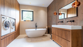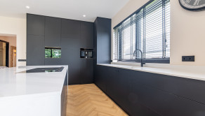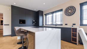 - plynový kotol je umiestnený v technickej miestnosti, ktorá je šikovne skrytá priamo v kuchynskej linke – ide o elegantné, dizajnové a praktické riešenie