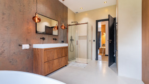- na mieru vyrobená stena v kúpeľni