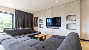 - kompletný vstavaný nábytok vrátane celej obývacej steny
