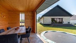 Súčasťou exteriéru je aj štýlový altánok s kuchynkou, ideálny na príjemné posedenia s rodinou či priateľmi. Z dennej časti domu sa vychádza na priestrannú terasu, ktorá prirodzene prepája interiér s exteriérom. Parkovanie je zabezpečené na spevnenej ploche zo zámkovej dlažby s dostatočne veľkou spevnenou plochou pre pohodlné parkovanie viacerých vozidiel.