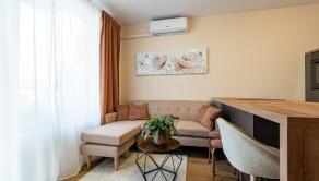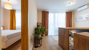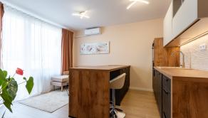 Tento krásny 1,5 izbový byt bude dokonalým útočiskom pre mladé páry, ktoré by sa radi osamostatnili a užívali si spoločný čas. Byt disponuje výmerou 43m2 a nájdete tu všetko, čo v živote potrebujete. Vstupnú chodbu so závesnou stenou pre kabáty, kúpeľňu s WC a sprchovacím kútom, obývačku s klimatizáciou, prepojenú s kompletne vybavenou kuchyňou, veľký balkón a samostatnú spálňu so vstavanou skriňou. V kúpeľni nájdete aj práčku.