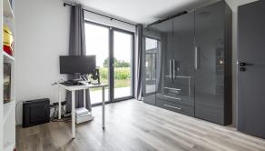 Dispozícia domu je praktická a prehľadná. Tvorí ju veľká obývacia izba prepojená s kuchyňou a jedálňou s výstupom na terasu, kuchyňa na mieru s ostrovom, spálňa so vstupom na súkromnú prestrešenú terasu, dve samostatné izby s východom na terasu, kúpeľňa, dve WC, technická miestnosť a garáž so skladom.