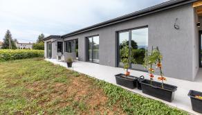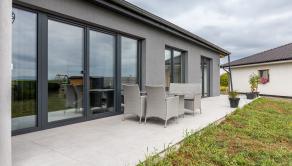 Veľká terasa je orientovaná na východ, čelo domu na západ, vďaka čomu je interiér presvetlený počas celého dňa. Pozemok je rovinatý, v slepej ulici, iba s jedným susedom a s obecnou prístupovou cestou bez tiarch.