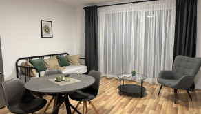 Na prenájom nový neobývaný komplet zariadený 1 izbový byt s balkónom, novostavba, Sadová ulica, Rezidencia Pri parku, Senica. Výťah je. Výmera bytu: 34 m2. Prenajíma sa zariadený. Pračka, rozkladací gauč na spanie. Byt je úplne nový, nik tu ešte nebýval. Balkón je. Poschodie: 3/5. Kobka je. K bytu možnosť prenajať si vonkajšie parkovacie státie pri bytovom dome, cena za prenájom plus 50 EUR mesačne. Voľný ihneď.