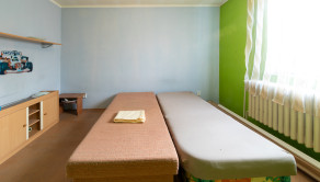 Nachádza sa tu kuchyňa a obývačka, dve spálne (jedna priechodná) a kúpeľňa so sprchovacím kútom a toaletou.