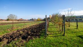 veľký, slnečný pozemok s viničom a ovocnými stromami