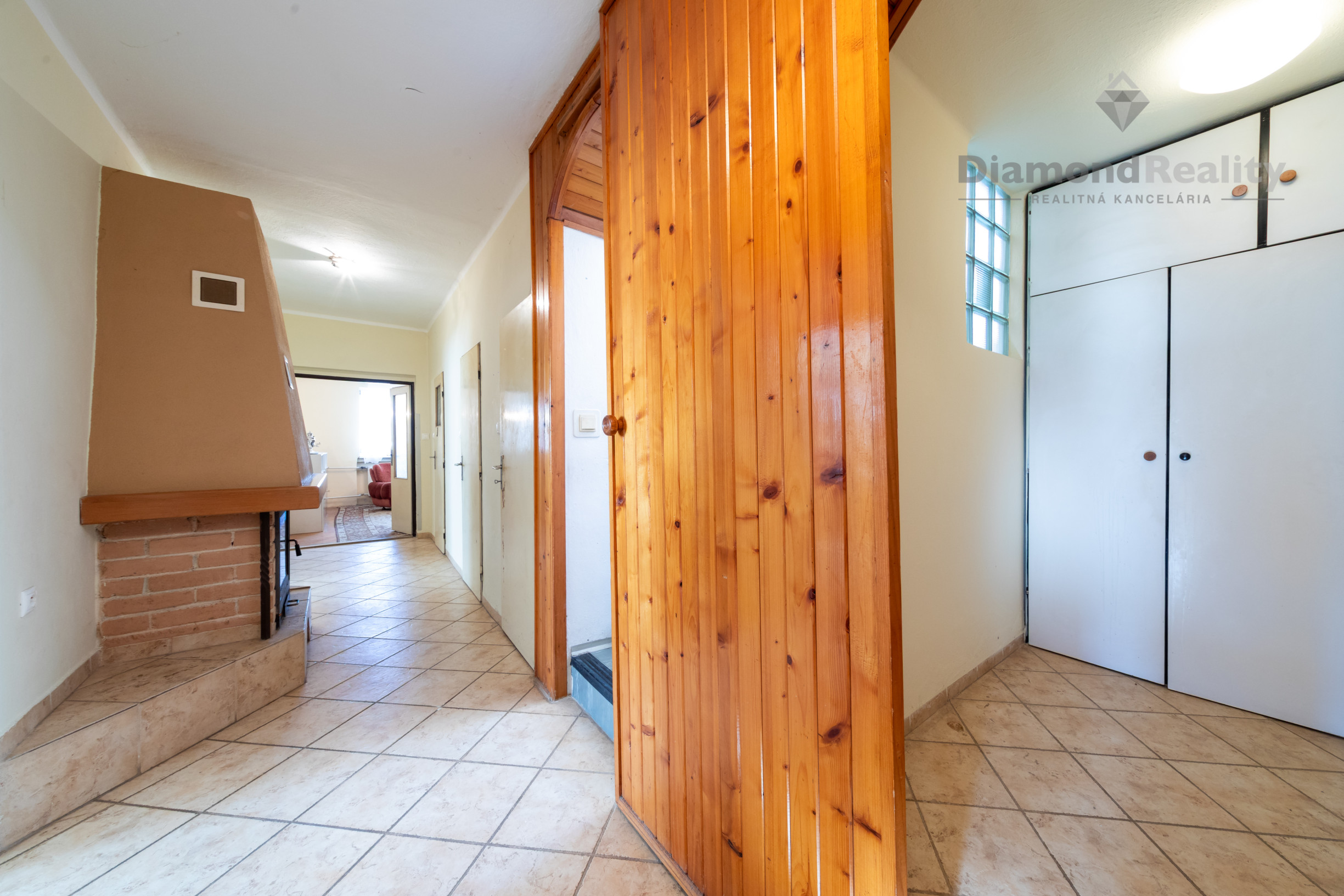 Prízemie vás privíta útulnou chodbou so šatníkom a krbom, ktorý v zime vytvára teplo domova.