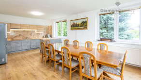 Dom teda disponuje na prízemí s priestrannej kuchyne s jedálňou, obývačky s krbom, samostatnej spálne, WC a kúpeľne. Na poschodí sa nacházda samostatná spálňa, WC, 2x kúpeľňa a obrovská miestnosť s rozlohou vyše 50m2. V suteréne nájdete už len WC a kuchyňu. Prenajíma sa s vybavením ako na fotkách. V dome sa pohodlne vyspí 6-7 ľudí.