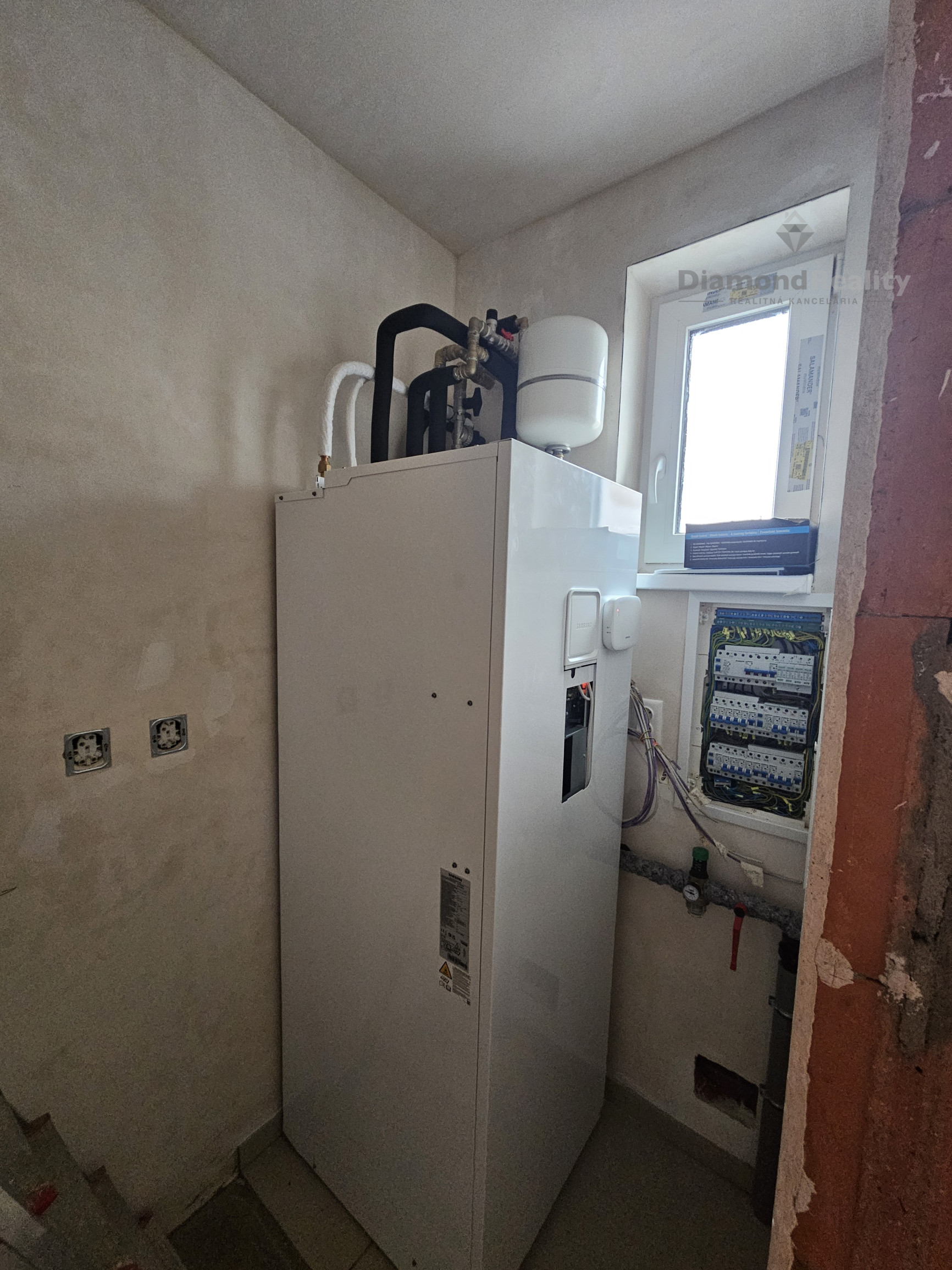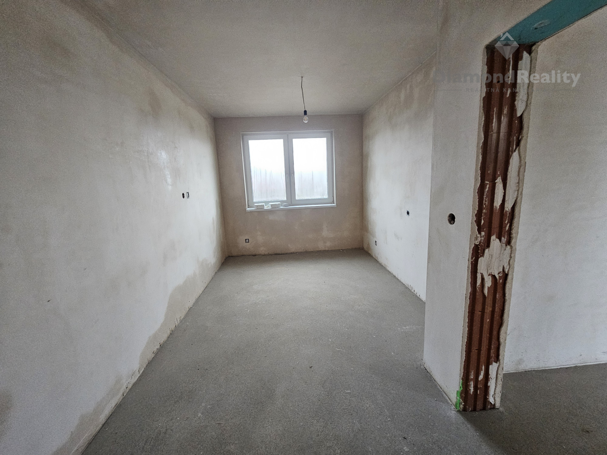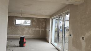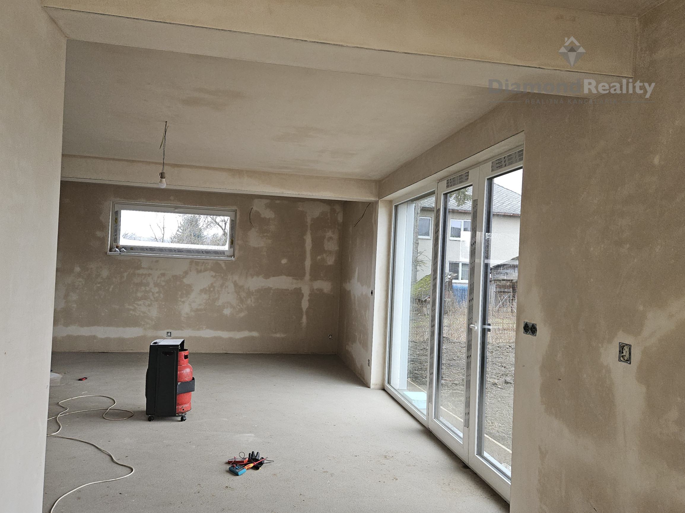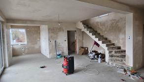 Interiér: sadrové omietky, cementový poter s tepelnou izoláciou, železobetónové schodisko, hygienický biely náter, rozvody elektroinštalácie, vody, odpadu, kúrenia, vypínače, zásuvky, železobetónový strop -1.podlažie a 2.podlažie.