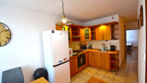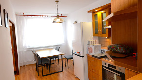Kuchyňa: nové spotrebiče , el.rúra, plynová varná doska, chladnička a mraznička, mikrovlnka, rýchlovarná kanvica. K dispozícii sú aj nové malé spotrebiče, taniere a príbory.