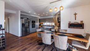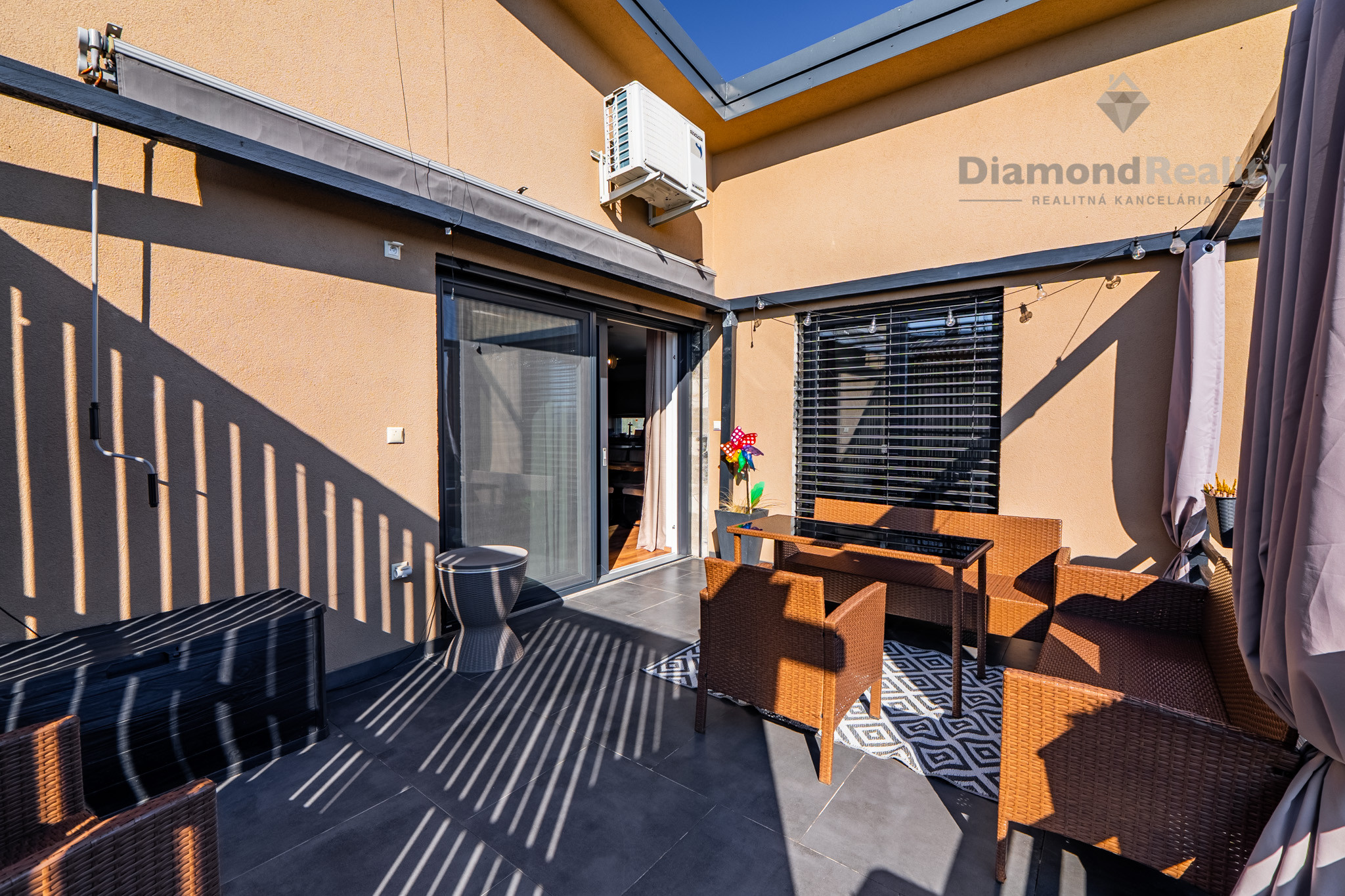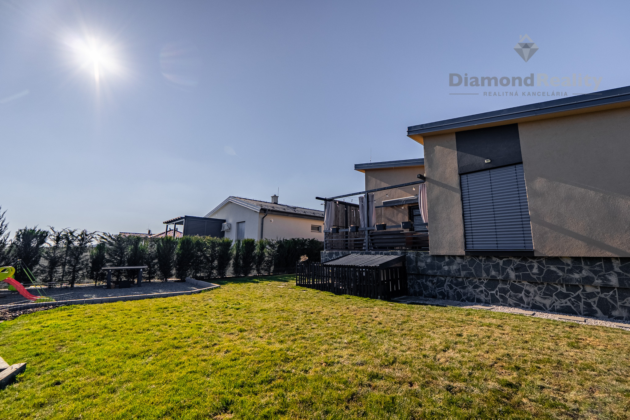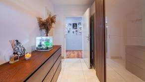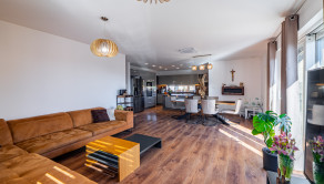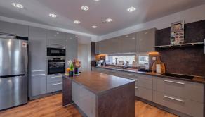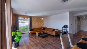 Navyše dom stojí na krásnom rovinatom pozemku s rozholou 742m2, s miestom na parkovanie pre 2 autá. Na dvore nájdete aj vyhrievaný a uzatvorený prístrešok pre rodinné oslavy za každého počasie, priestor na bazén s tepelným čerpadlom, mini jazierko a pivnicu pod terasou. Jednoducho dokonale vybavený dom pre modernú rodinu.