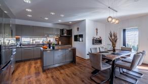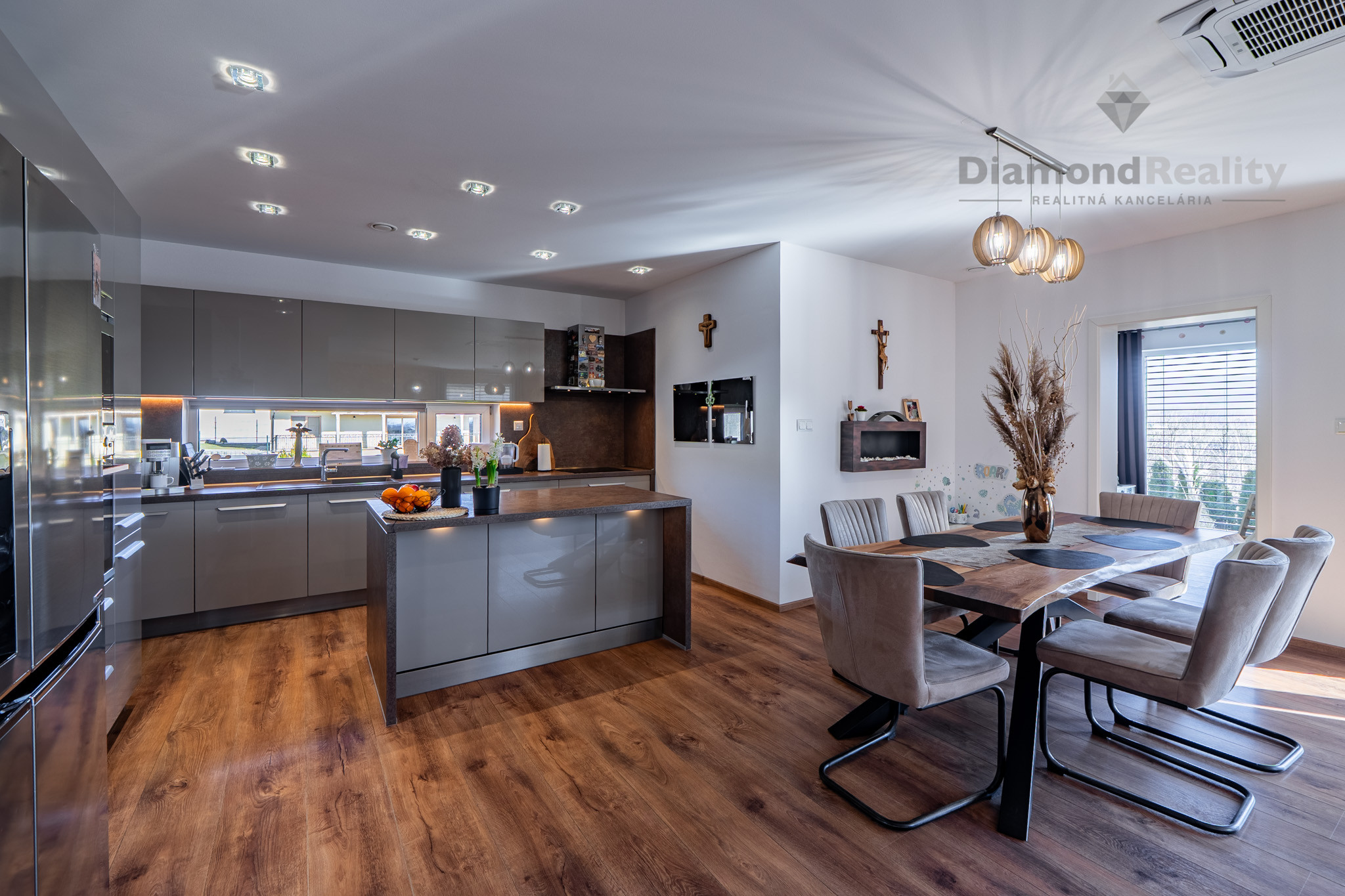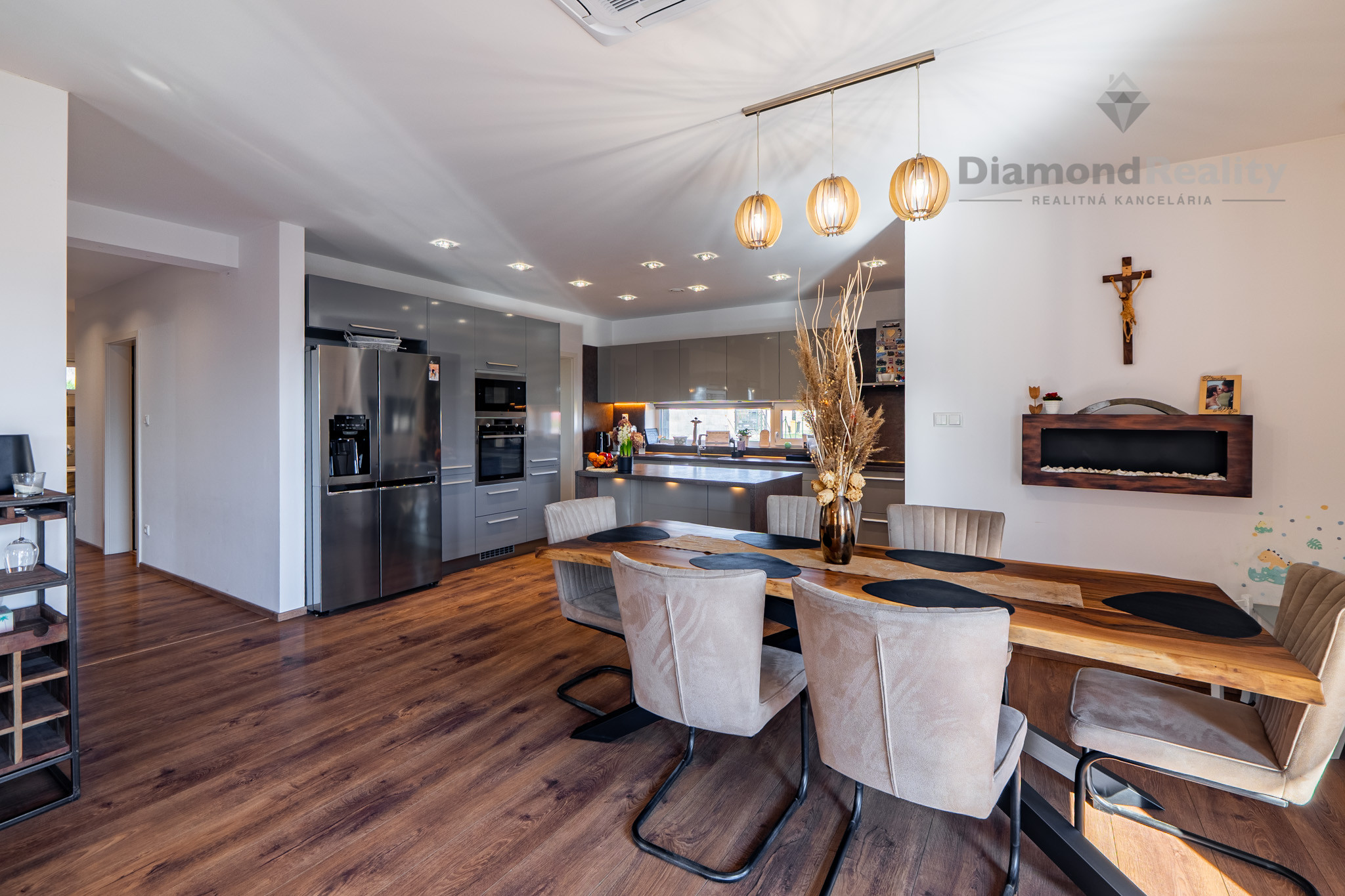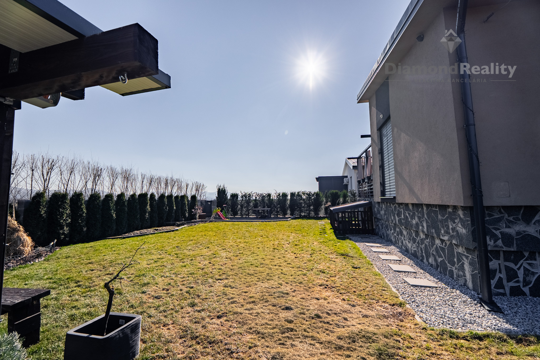 Navyše dom stojí na krásnom rovinatom pozemku s rozholou 742m2, s miestom na parkovanie pre 2 autá. Na dvore nájdete aj vyhrievaný a uzatvorený prístrešok pre rodinné oslavy za každého počasie, priestor na bazén s tepelným čerpadlom, mini jazierko a pivnicu pod terasou. Jednoducho dokonale vybavený dom pre modernú rodinu.
