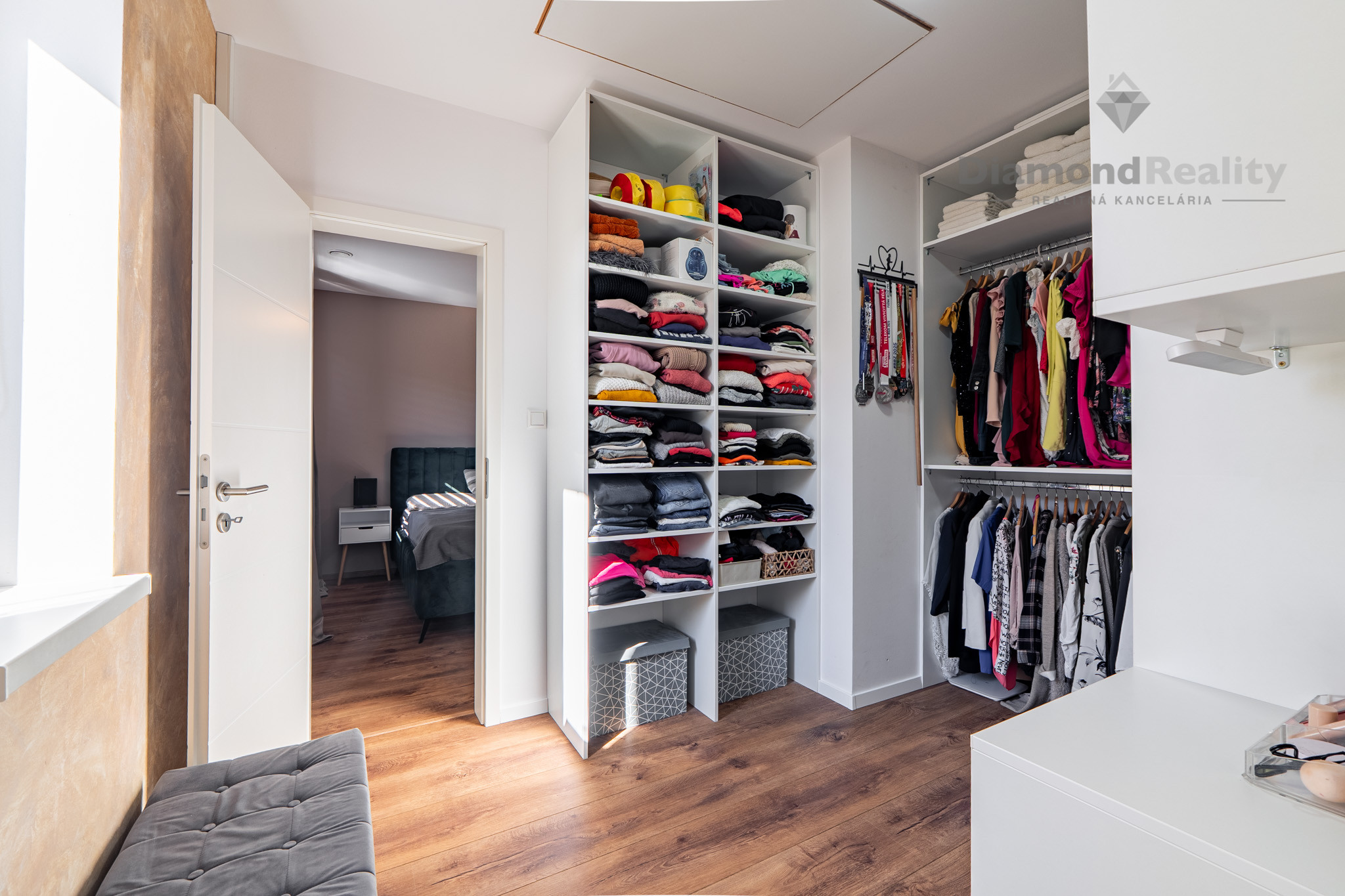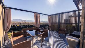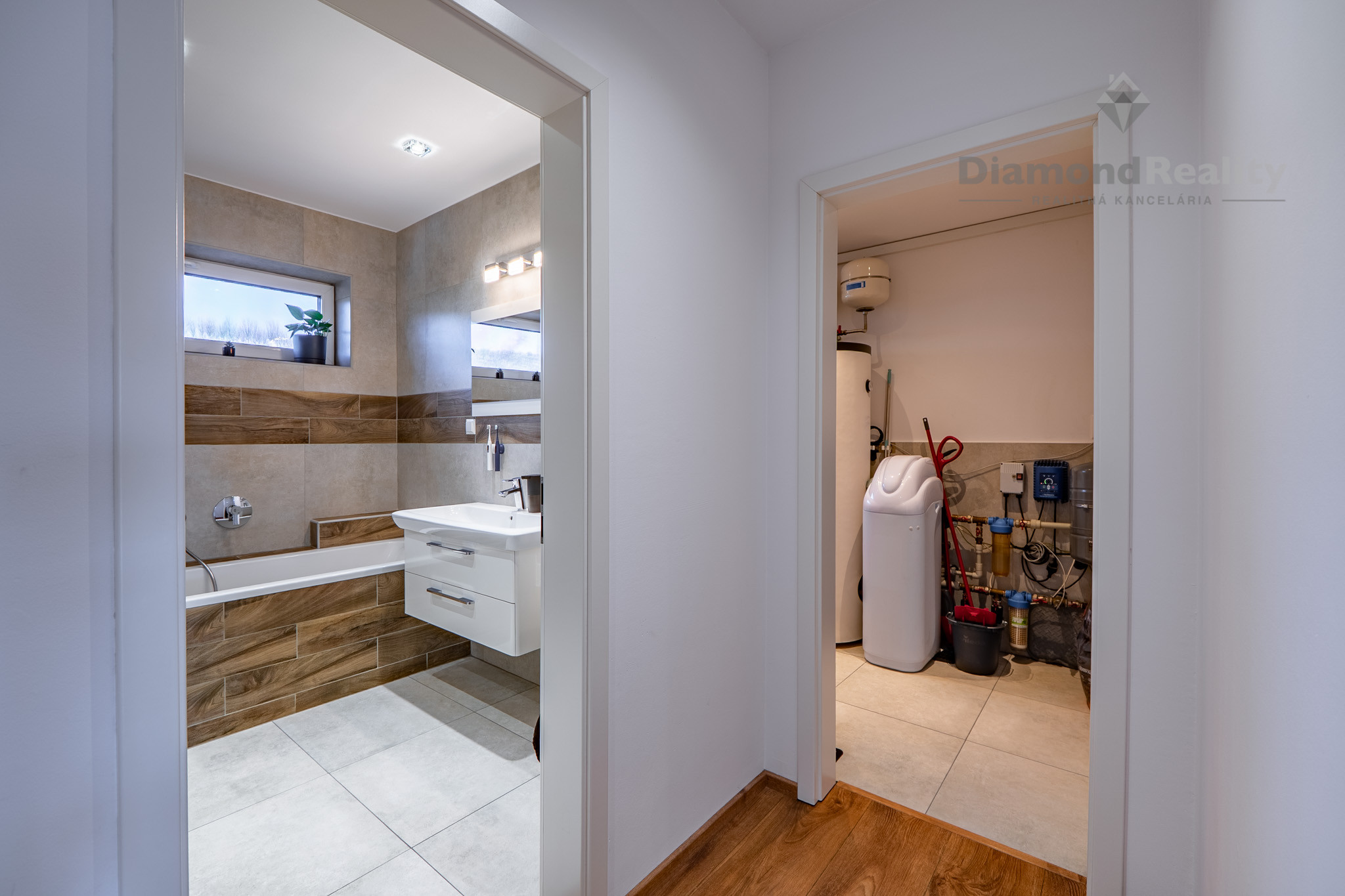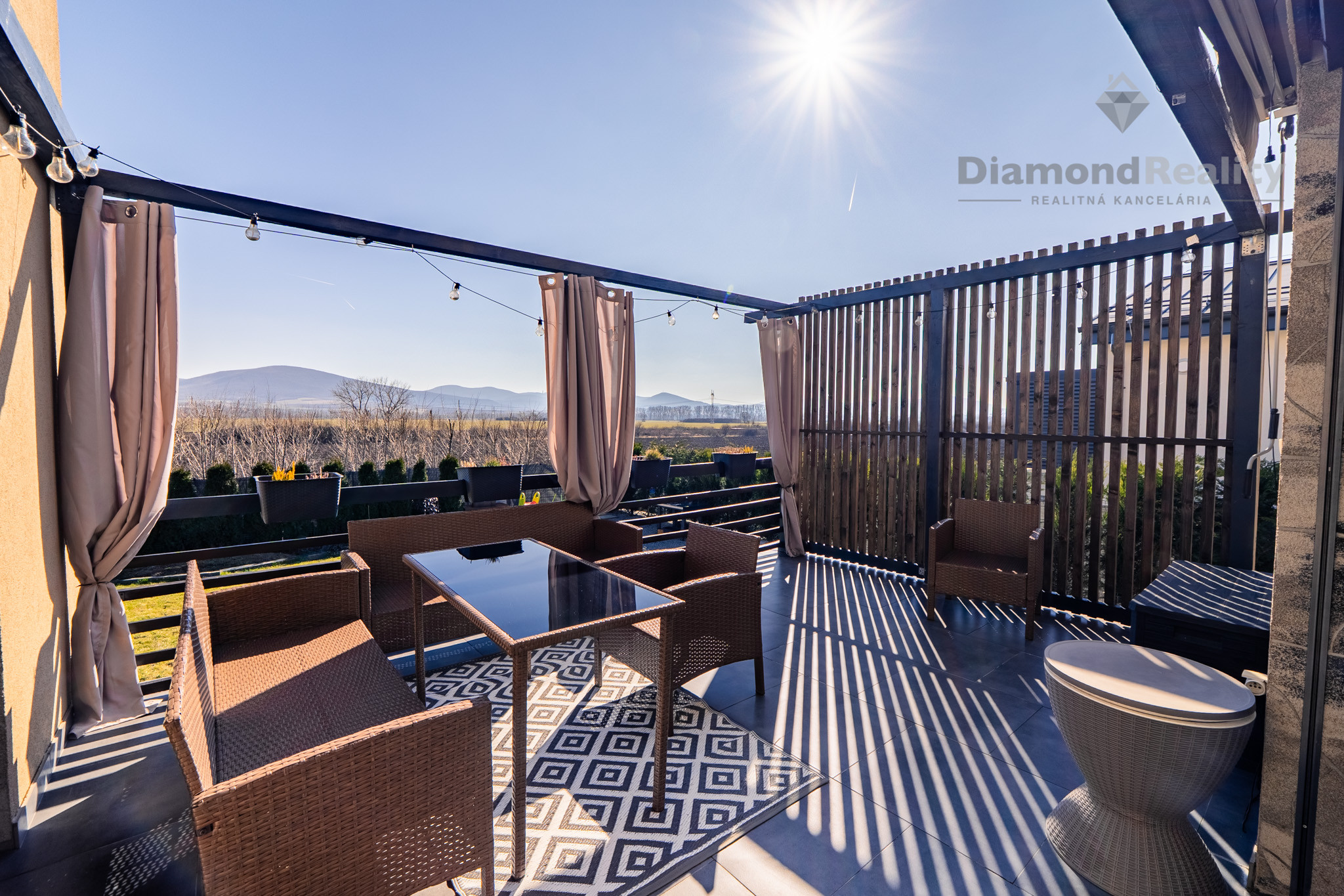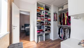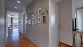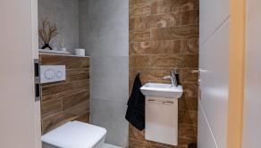 Interiér domu disponuje výmerou až 135m2 a konkrétne 3 spálňami, priestrannou obývačkou s kuchyňou, ktorá má aj špajzu. Kúpeľňa s vaňou a sprchovacím kútom + WC, ďalšie hosťovské WC, technická miestnosť a dve spálne disponujú aj vlastným šatníkom. Jeden zo šatníkov je pripravený svoje miesto prenechať budúcej spálni, ak by ste potrebovali vytvoriť ďalšiu spálňu a neprísť do dôležité metre. Z obývačky a jednej spálne je výstup na 18 metrovú terasu s markízou a dokonalým výhľadom na celé okolie. Žiaden betón či autá, len príroda.