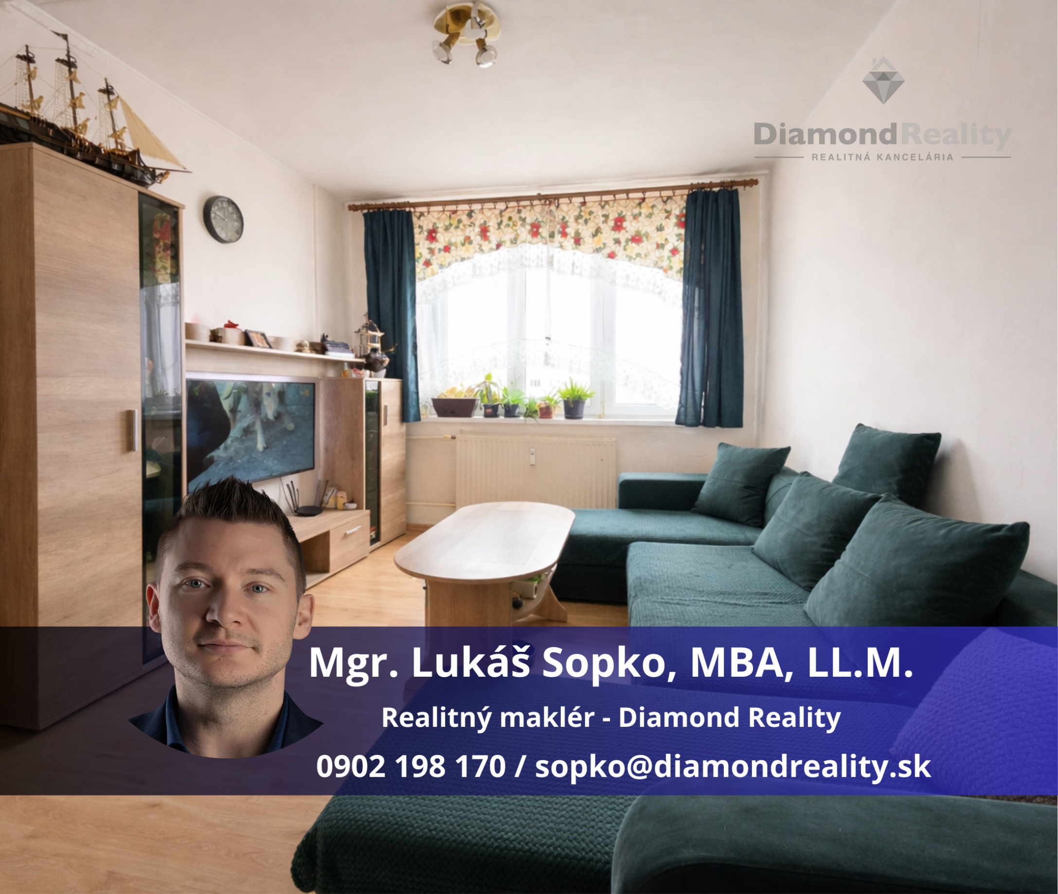 Pre viac informácií o tejto nehnuteľnosti kontaktujte prosím Mgr. LUKÁŠA SOPKA, MBA, LL.M., a to na telefónnom čísle 0902 198 170 alebo prostredníctvom mailu sopko@diamondreality.sk