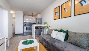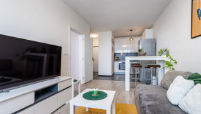 Dispozične je byt riešený veľmi prakticky a vzdušne. Pozostáva z obývacej izby prepojenej s kuchynským kútom, samostatnej spálne, kúpeľne s WC a predsiene so vstavanou skriňou. Z obývacej izby aj zo spálne je priamy vstup na priestrannú terasu, ktorá poskytuje dostatok priestoru na oddych, posedenie či pokojné trávenie voľného času na čerstvom vzduchu. Platba pre správcu 80 eur/mesačne a platba za elektrinu 30 eur/mesačne.