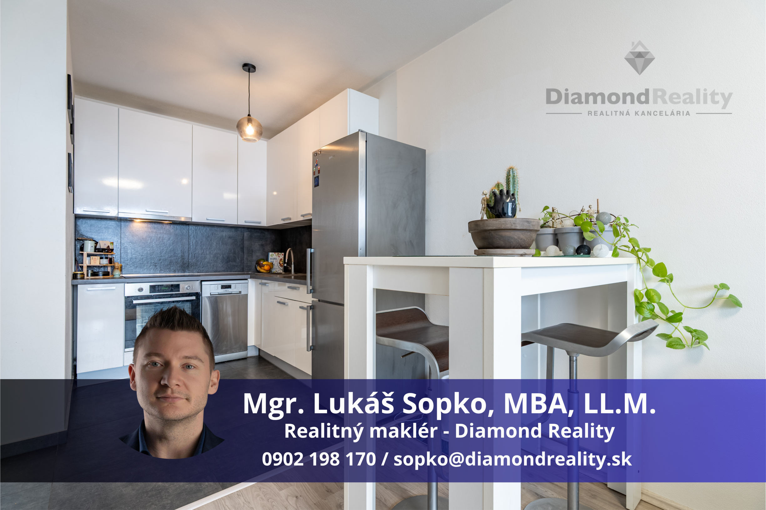 Cena nehnuteľnosti je 234.000 € vrátane provízie realitnej kancelárie a kompletného právneho servisu. Pre viac informácií alebo dohodnutie obhliadky kontaktujte prosím Mgr. Lukáša Sopka, MBA, LL.M. na telefónnom čísle 0902 198 170, alebo e-mailom na adrese: sopko@diamondreality.sk.
